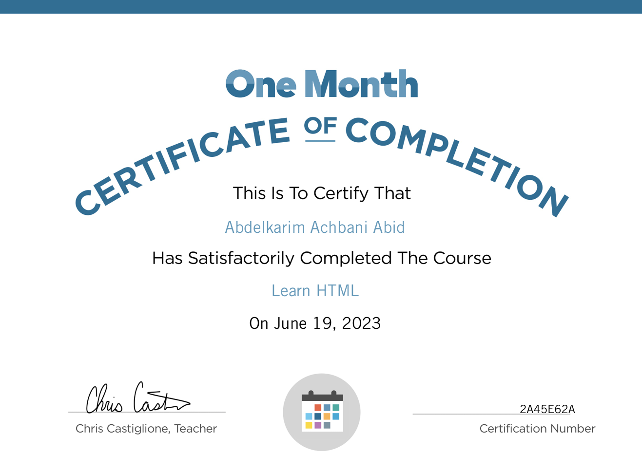 To earn this certificate, I've learned HTML in a bit deeper level than usual, emphasizing in which labels to use, and SEO-related things.