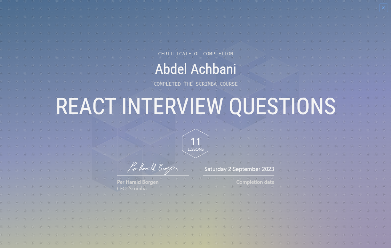 I learned the key React concepts I'm asked about in interviews - the Virtual DOM, JSX, props, state, context, refs, effects, and the component lifecycle.