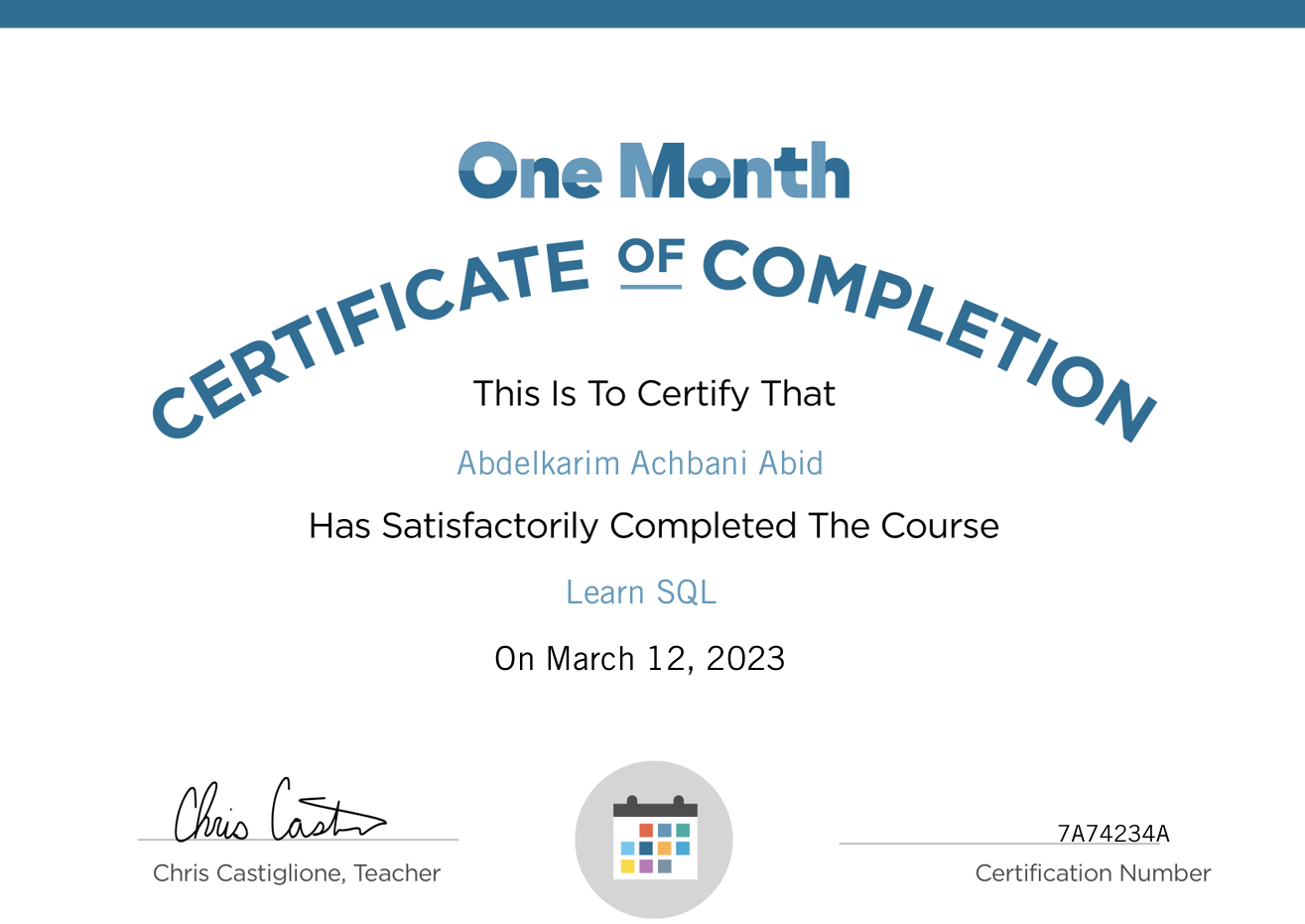 To earn this cerficiate, I've learned to query in SQL, filtering and selecting data in some datasets, with basic and some advanced commands.